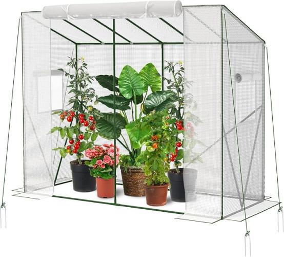 Ongebruikt, ok, Velway Tomatenkas met folie, stabiel, 208 x 81 x 170/141 cm, winterbestendige tomatenkas met schuin dak, tuinkas met PE-rasterfolie, ventilatievenster, grondankers, B0FPCFJ1H4