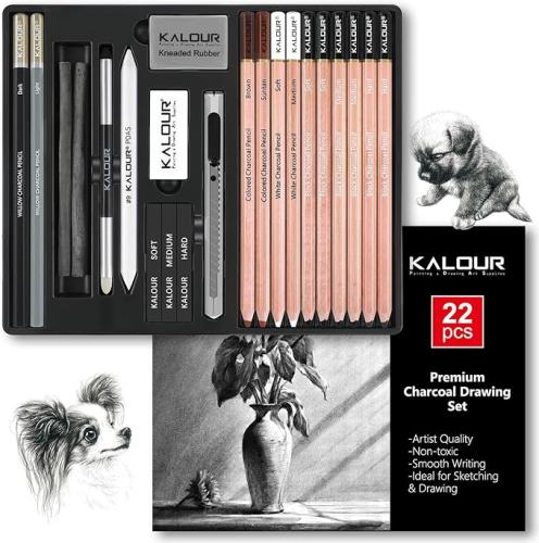 KALOUR PDAS Houtskool Tekenset, 22-delig