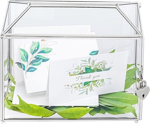 Ongebruikt, ok, NCYP Zilveren glazen kaartendoos met sleuf en slot voor bruiloft, verjaardag, feest - 26 x 15 x 20,3 cm handgemaakte doorzichtige geometrische glazen kaarthouder - woondecoratie vetplanten terrarium, B0BJQ2R7V4