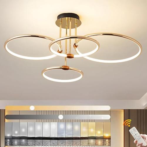 Minieme gebruikssporen, getest en werkend, volledig, ok, YYUTLUO LED-plafondlamp, Ø75cm gouden metalen ronde kroonluchter, 85W traploos dimbaar 3000-6000K, moderne ronde gegalvaniseerde hanger, slaapkamer, woonkamer, kinderkamer, kantoor, studeerkamer, keuken, hal (4 ringen) [Energieklasse A],B0D57ZG6NS