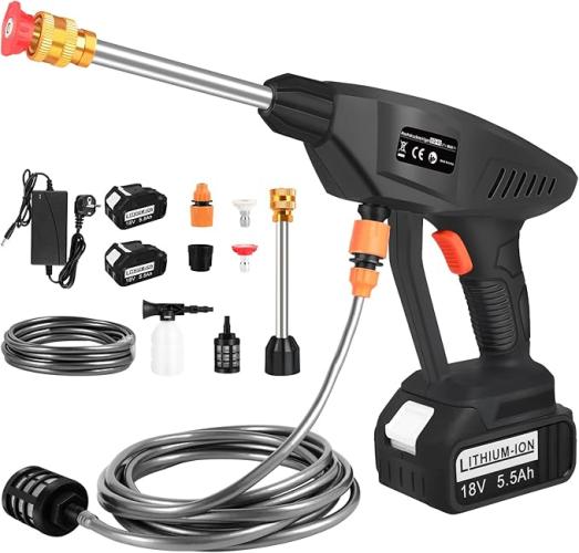 Gebruikssporen, getest en werkend, ASUNCELL Accu-hogedrukreiniger met 2 x 5500 mAh accu's, multifunctionele sproeikop, draadloze draagbare hogedrukreiniger, Hydroblast hogedrukreiniger voor auto's, gazon, tuin en zwembaden, B0DZ5NXYGX