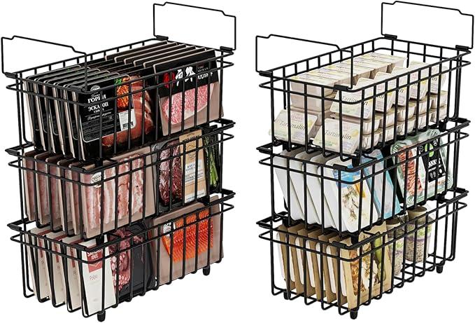 Ongebruikt, ok, UMDONX 6-delige diepvriesmandenset zwart - Stapelbare diepvriesmanden met handvat, gemakkelijke toegang, voor een vriezer van 198 liter, voor het organiseren van diepvriesproducten (37x18x15cm), B0DK9431MW