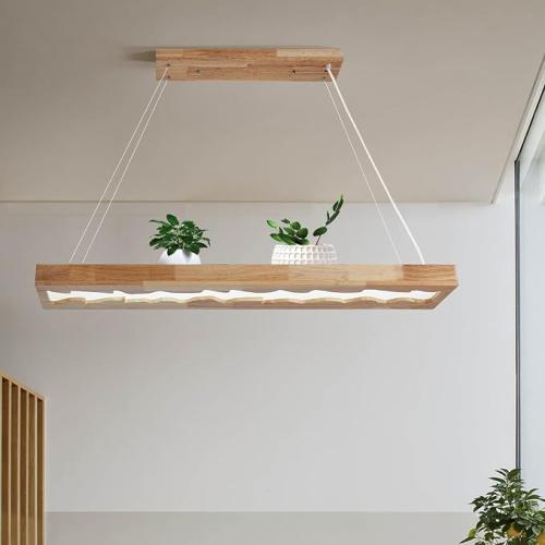 Minieme gebruikssporen, getest, compleet, LED houten hanglamp, dimbare rustieke houten hanglamp voor eettafel, in hoogte verstelbare plafondlamp, 40W, 100cm, B0BN7Y77D8