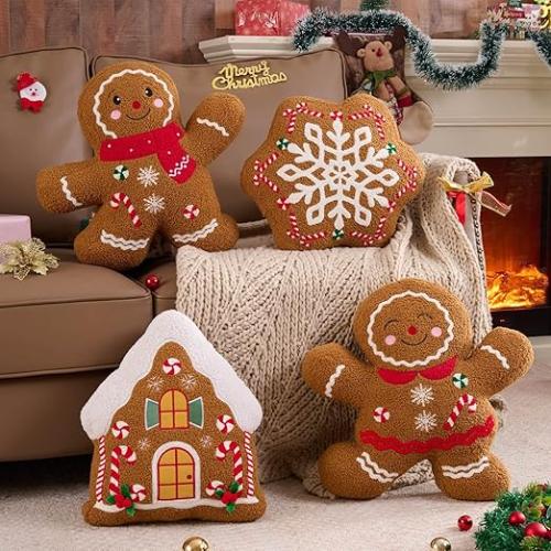 Ongeopend, in seal, Lanpn Peperkoek Kerstkussen set van 4, Kerstdecoratie, winter sierkussen Peperkoek kussen decoratief kussen voor Geschenk Thuis Feest Kantoor Woonkamer Slaapkamer Bank Bed, B0FMKDM9QY