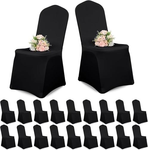 Ongeopend, in seal, Showgeous 20 stuks stoelhoezen zwart polyester spandex lycra stretch stoelhoes eetkamer bruiloft stoelhoezen universele wasbare beschermende stoelhoezen voor bruiloftsfeest banket decoratiehoezen, B0DCS4D2S3