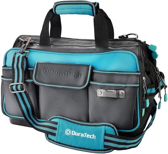 Ongebruikt, ok, DURATECH Gereedschapstas (43 cm), 32 zakken grote gereedschapstas, harde basis, brede open mond opbergtas, 840D zware gereedschapstassen met verstelbare schouderriem, B09P84LYKY