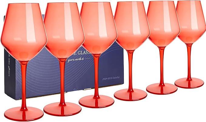 Ongeopend, ok, HAHASHOW Kleurrijke wijnglazen, onbreekbare set van 6 glas met lange steel, 15 oz Tritan plastic kleur drinkgerei, vaatwasser beschikbaar glaswerk, B0CZXG5N1L