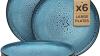 Ongebruikt, ok, 1 bowl ontbreekt, 1 bord met stukje af, foto's indicatief (kleur Zwart/Blauw), Twinzee 24-delig modern servies van steengoed voor 6 personen - Magnetronbestendig - Riviera Collection servies voor 6 personen, B0FJYBY7JL