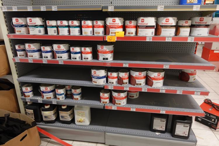 Volledige inhoud rek diverse verven/producten
