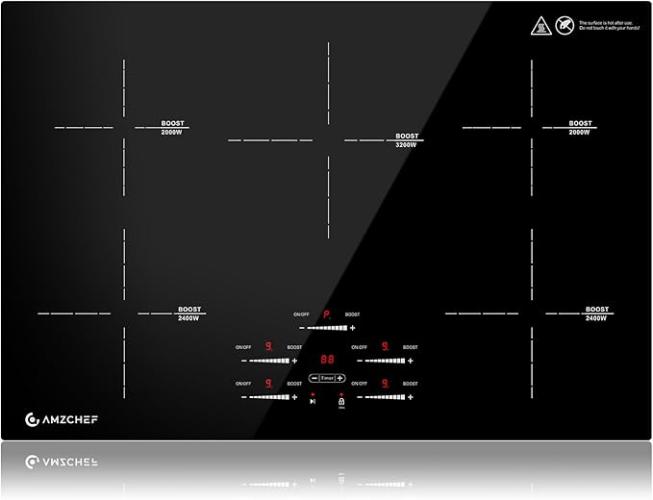 Ongebruikt, getest en werkend, volledig, ok, AMZCHEF Inductiekookplaat (80 cm), inbouw inductiekookplaat, 5 zones met booster en 9 niveaus, pauzefunctie, warmhouden, sliderbediening, timer, veiligheidsslot, 9500 W, B0DK4XR3KH