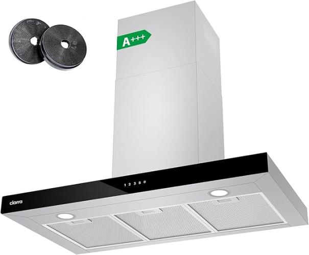 Ongebruikt, getest en werkend, volledig, ok, CIARRA CBCS9102 A+++ Afzuigkap (90cm) 650 m³/h - Touch Control en Wifi - 4 Snelheden met Booster,afvoerstand en recirculatie afzuigkap met koolstoffilter CBCF003 - Roestvrij Staal [Energieklasse A+++], B06X94NW8G