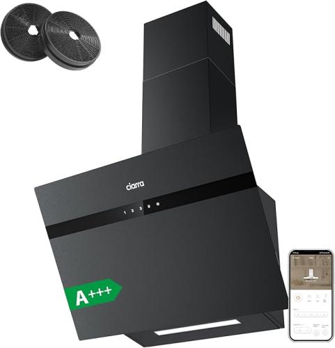 Ongebruikt, getest en werkend, volledig, ok, Ciarra AS6736HG Afzuigkap schuin, 60 cm, 650 m³/u, klasse A++, koolstoffilter inbegrepen, touch-bediening, 3 snelheden en boost-functie, 2 helderheidsniveaus dimbaar, matglas [Energieklasse A+++], B0BTY3NGH2