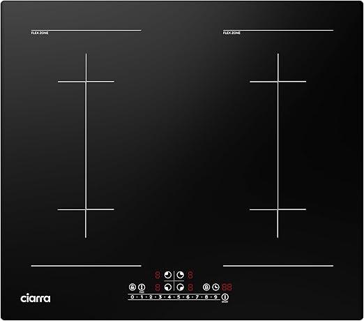 Ongebruikt, getest en werkend, volledig, ok, CIARRA CBBIH4BFF 4 zones inbouw inductiekookplaat met twee flexzones power booster touch-bediening kookplaat inductie 4 platen 9 standen inductiekookplaat 60 cm 7200 W, B08JZ87VWL