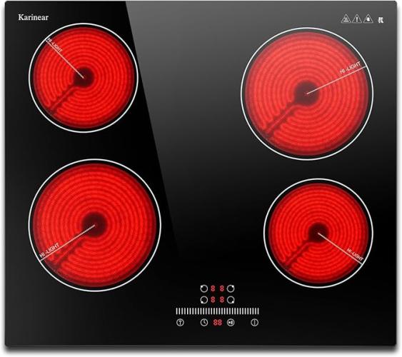 Ongebruikt, getest en werkend, volledig, ok, Karinear Keramische kookplaat, 4 kookplaten, 60 cm, 6000 W, schuifregelaar, 9 standen, veiligheidsvergrendeling, altijd pauze, timer, B0D6BB3LVY