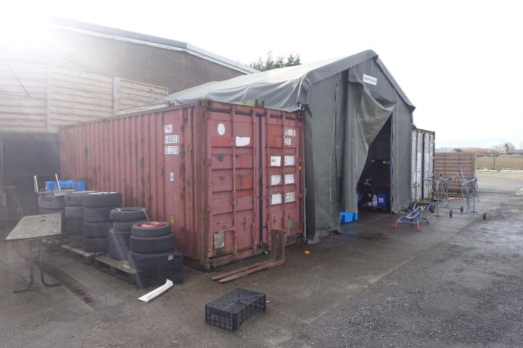 6000x6000x4500, dit betreft enkel de tentopstelling (bache+geraamte), er is mogelijkheid tot bijkopen containers voor totaalopstelling in volgende lot (totaalbod), te demonteren op het begin van de afhaaldag!