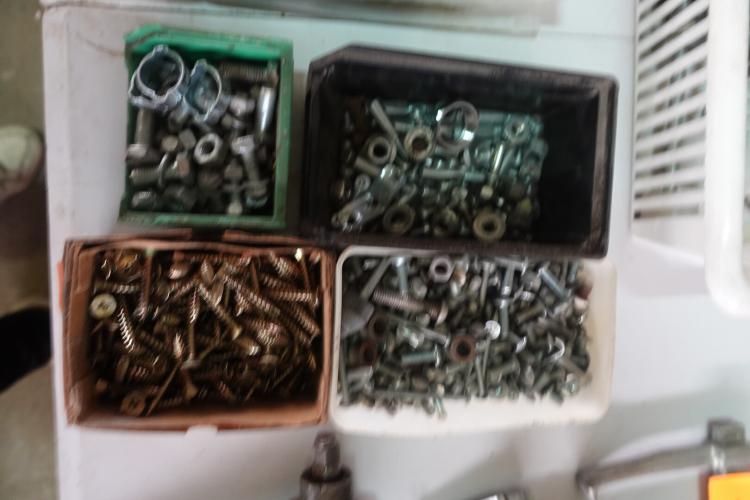 lot van 4 bakken vijzen, moeren, bouten