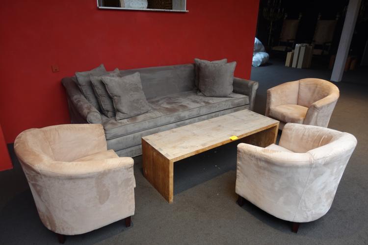 vv: 3-zit zetel , 3x kuipstoel, salontafel