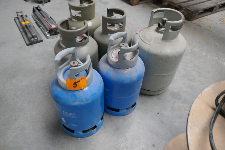 6 lege gasflessen