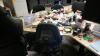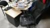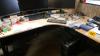 Compleet ingerichte bureau hoekvorm bestaande uit 3 delen en 3 ladenblokken ( zonder inhoud ) + verrijdbare bureaustoel + 2 bezoekersstoelen en zwarte bureaustoel
