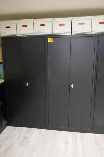 2 zwartmetalen dossierkasten met legborden