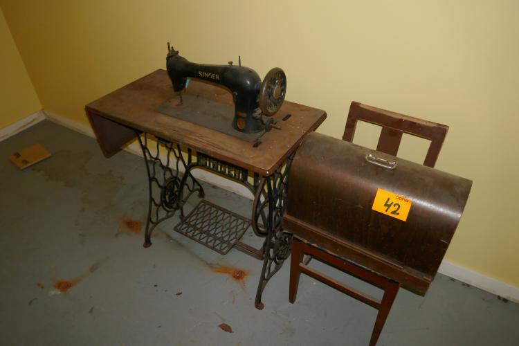 Vintage naaimachine bureau met stoel - merk, SINGER