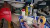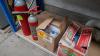 Diverse poetsprodukten - schildergerief - 2 snelblussers - verfprodukten - enz..