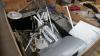 4 diverse houten palletboxen met inhoud : oud ijzer, lege en gebruikte verfpotten en lege kartonnen dozen