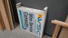 Houten schragen + haaks reclamepaneel + houten meubelplaten