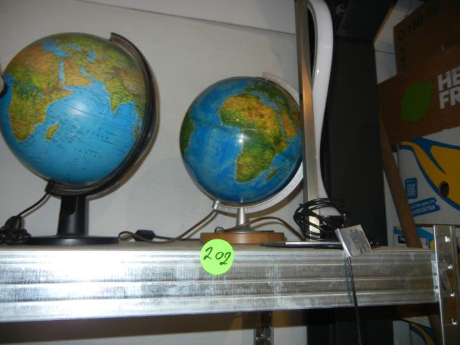 2 tafellampen en 2 wereldbollen