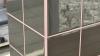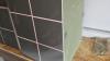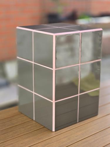 Prototype Design tegeltafel handmade 31x31x31H zandbruin met paarse voeg - !1 zijkant niet betegeld!