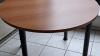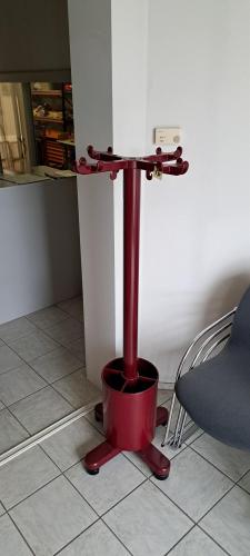 kapstok, 2 ronde tafels en 6 stapelstoelen