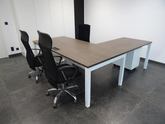 Hoekbureau + ladekastje en 3x bureaustoel
