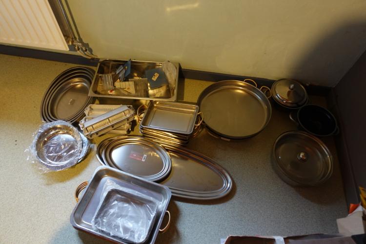 Partij diverse inox schalen/braadslede