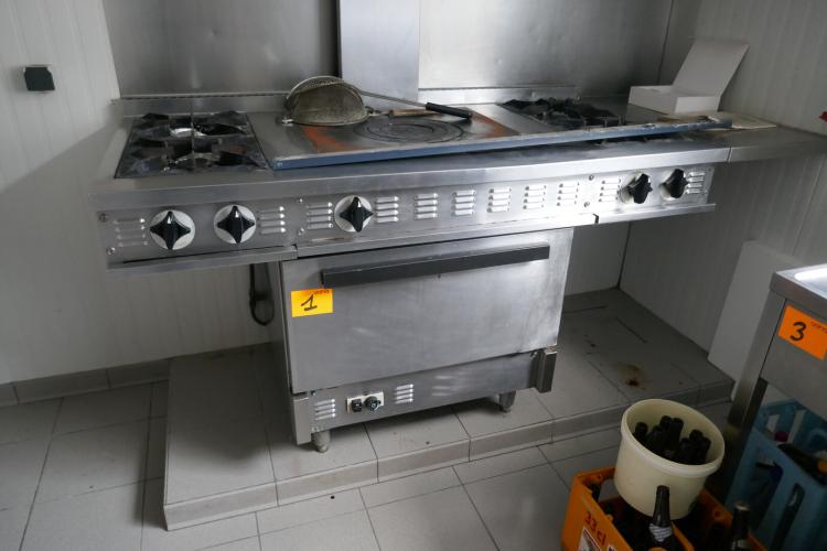 RVS kookunit op gas met 4 pits, doorkookplaat en oven