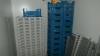 Reeks plastieken stapelbakken met transportwagen