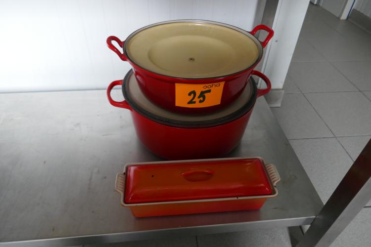2 gietijzeren braadpan-pot met deksels + patépot