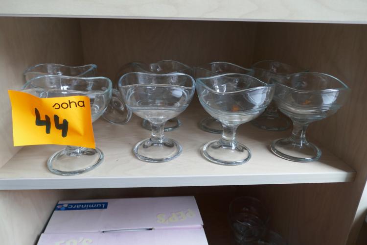 Glazen ijscoupkes - dessertglazen - wijnglazen - glazen kommen en schalen - glazen borden + inhoud vitrinefrigo