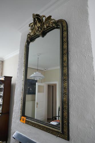 Antieken wandspiegel met rijk versierde lijs