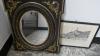 4 ingelijste etsen + Antieken Napoleon III stijl spiegel
