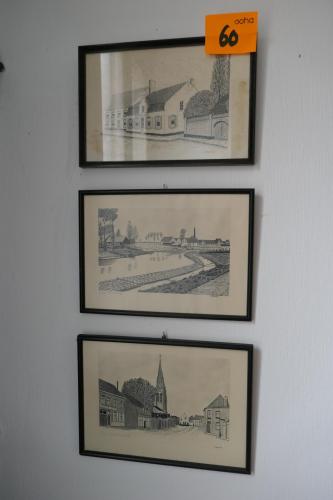 4 ingelijste prenten of etsen Leiestreek - gesigneerd door J.Desmet