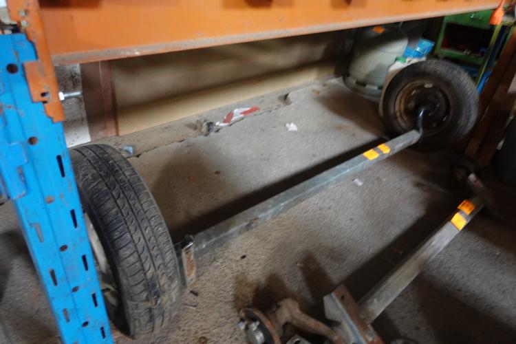 As voor aanhangwagen met wielen L. 1,60m (flensen ontbreken)