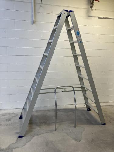 Uitvoering: dubbel oploopbaar - Aantal treden: 2 x 9 treden - Max, belastbaarheid: 150kg - Max. stahoogte: 2,25m - Max. werkhoogte: 1.4m - Normering: EN131 / NEN - Materiaal: Hoogwaardig Aluminium - Antislip - Gewicht: 17kg