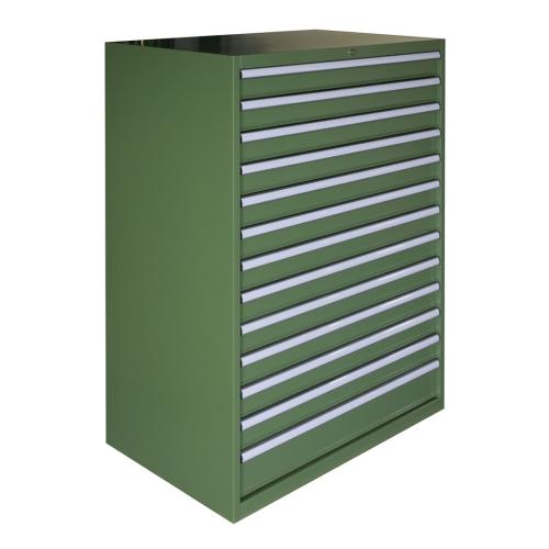 Kast met centraal vergrendelsysteem en vergrendelstang - De laden zijn enkelvoudig en volledig uitschijfbaar - Draagvermogen per lade volledig uitschoven: 200kg - - 12 laden van 100mm hoog - 1 lade van 150mm hoog