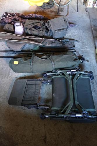 oa. ligbed, stoel, tent, molens, beetmelders met ontvanger, hengels al dan niet compleet, diversen, ...