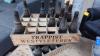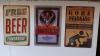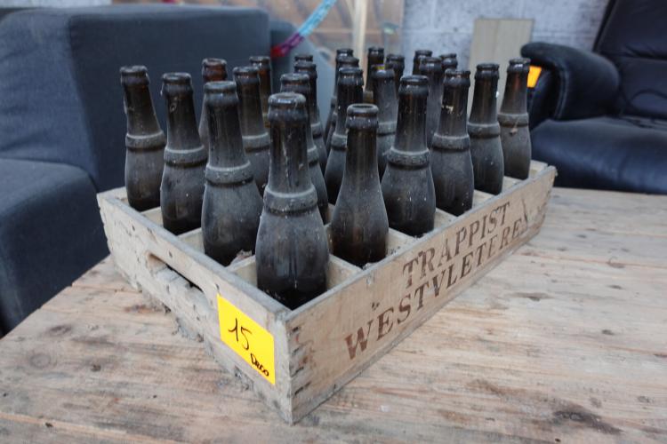 oa. leeggoed Westvleteren, houten meubel, reclame bordjes, staande lamp, houten wandconsole, houten kapstok
