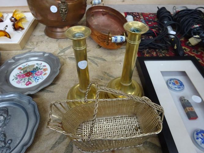 2 koperen kandelaars + wijnfleshouder