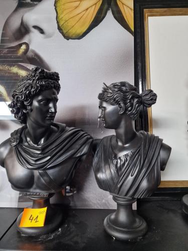 zwart borstbeeld van de Griekse God Apollo + en één van de Griekse Godin Artemis / Diana