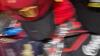 2 metalen netmanden / grabbeltonnen, met een hoeveelheid caps, 17-tal mutsen, 4 sjaals