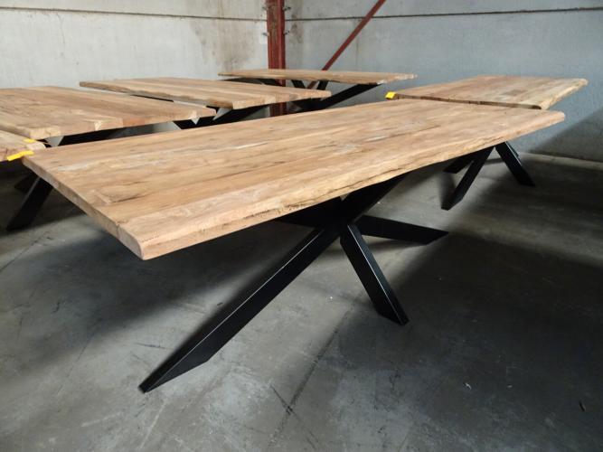 oude teak vv metalen spiderpoot, 2200x1000x800