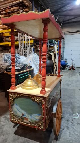 95cmB, 175cmLang, 215cmH, afneembare dakconstructie. Met ingebouwde vriezer op elektriciteit.